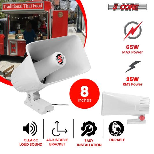 5Core Indoor Outdoor PA Horn Speaker 8 X 5 Inch Loud PA System 8 Ohm 65W Loud Siren Audio